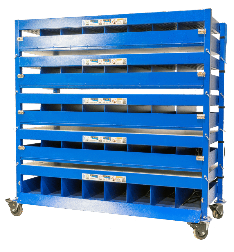 Without the appropriate separation and safety measures in place, charging multiple batteries poses a dormant but potentially devastating threat. Offering proven effectiveness, these battery racks have been engineered to comply with fire codes and exceed fire marshal expectations of safety.